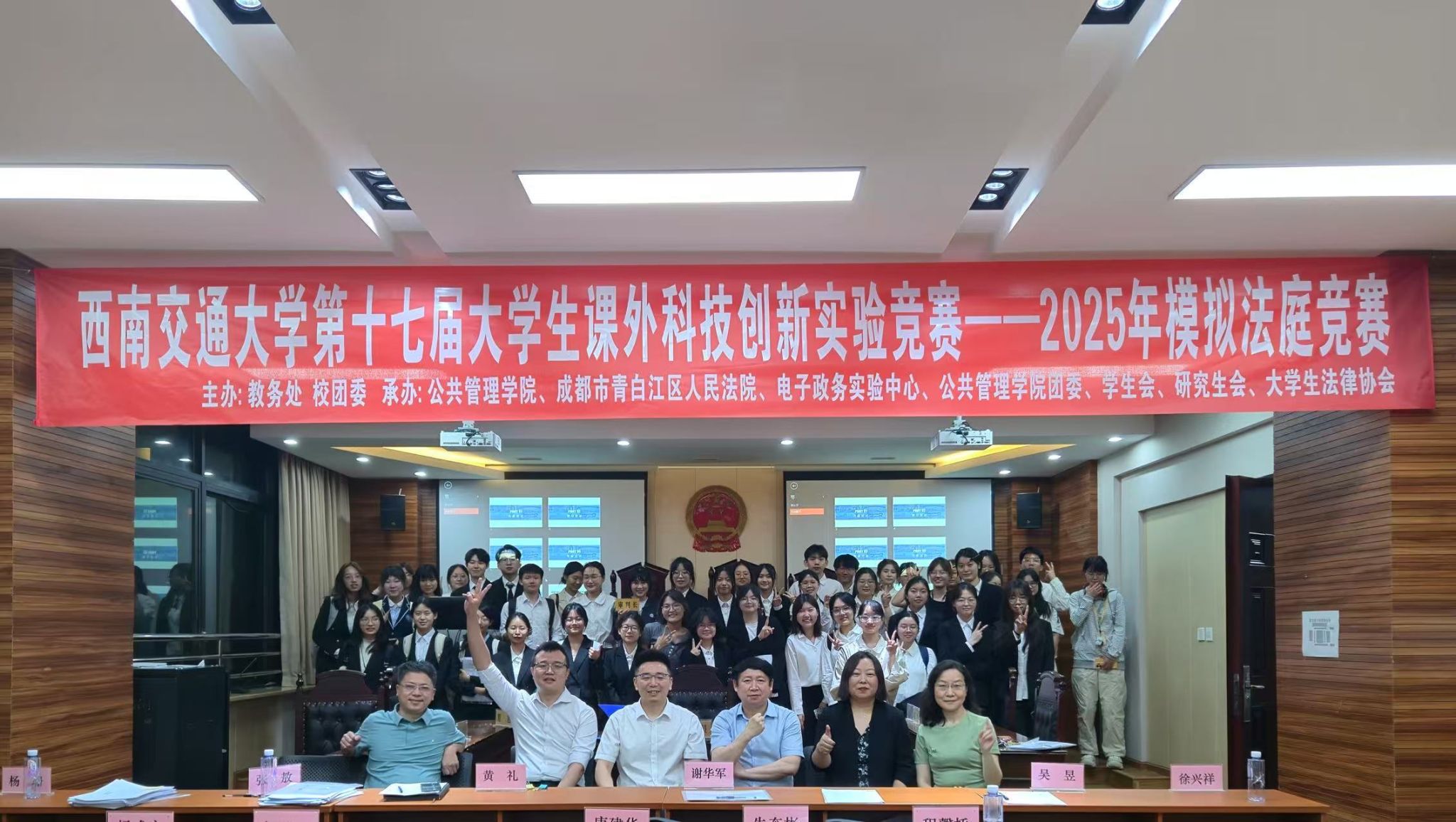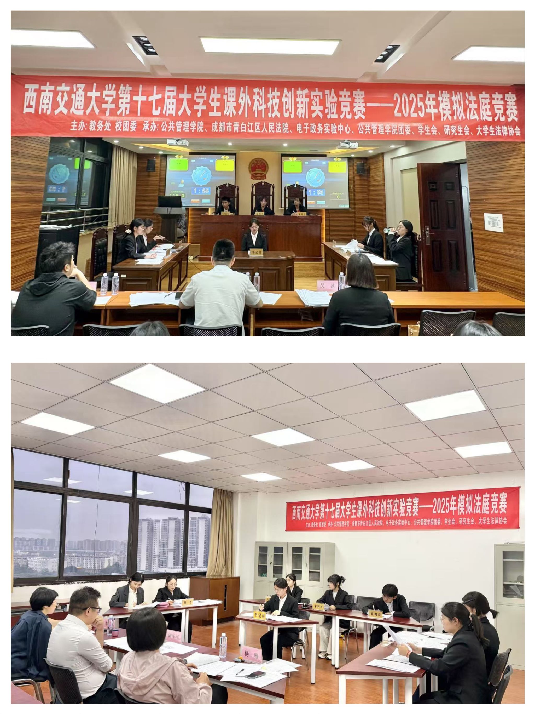 为强化学生在法律实务操作、团队协作、证据分析、法律文书撰写以及复杂法律问题应对等多方面的综合能力,2025年5月21日19:00,由必赢亚赢网站官网教务处、校团委主办,必赢亚赢网站官网联合成都市青白江区人民法院承办,模拟法庭实验室、学院团委、学生会、研究生会、大学生法律协会共同协办的必赢亚赢网站官网第十七届大学生课外科技创新实验竞赛活动暨2025年模拟法庭竞赛复赛于九里校区01417模拟法庭实验室正式开赛。
