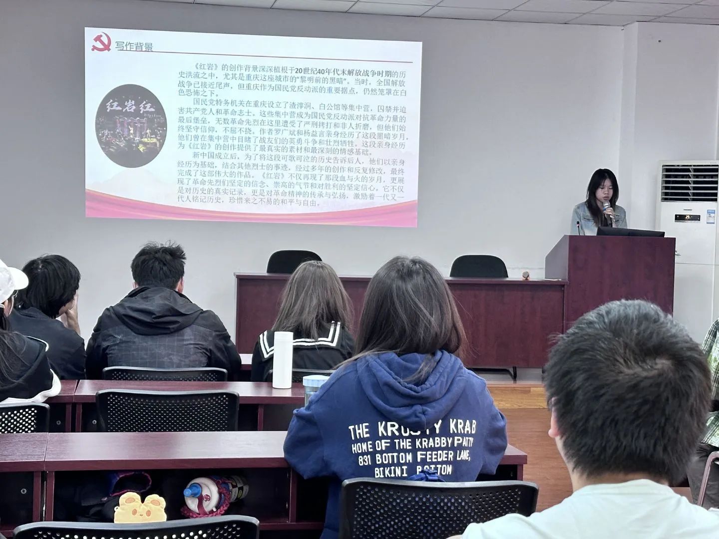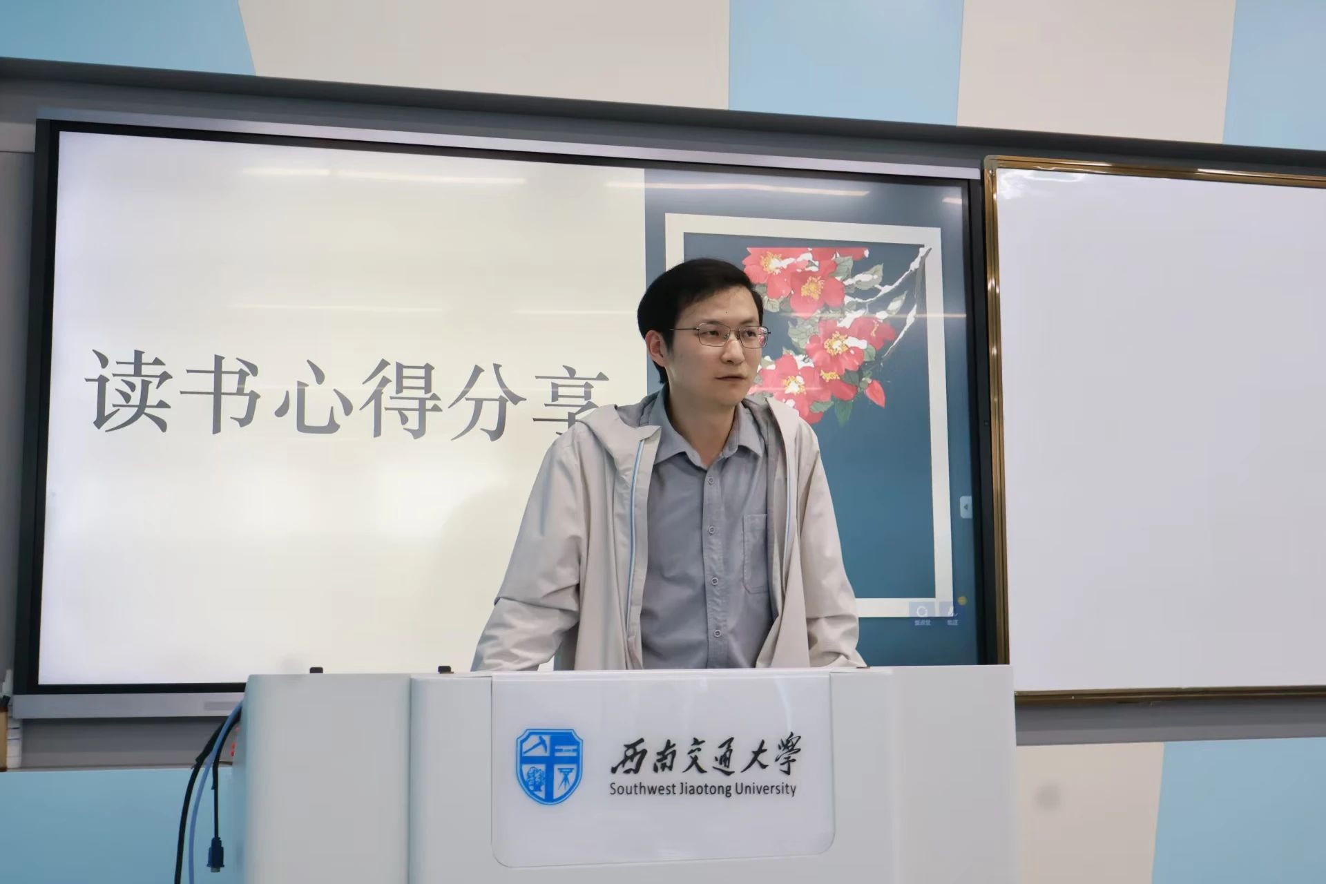 4月25日,本科政治2023-01班在J01106教室开展了“书香润初心•青春担使命”专题读书活动。“经典共赏”环节掀开了活动的序幕,团支书刘雨琪同学介绍了《红岩》这一红色经典的基本内容,钟徐昌屹、韩思磊、蒋国鑫、王子豪四位同学带来了《红岩》中经典片段的朗诵。此外,班级还特别制作了视频《青春励行志》,生动展示了班级同学的青春风采。最后,班级成员特制《我们在交大写了一本“书”》PPT,记录班级独有的交大记忆。“师长领航”环节徐梦莹老师对本次班会做出了点评,并向同学们推荐相关书籍,鼓励同学们在日常学习生活中充实知识,徜徉书海。