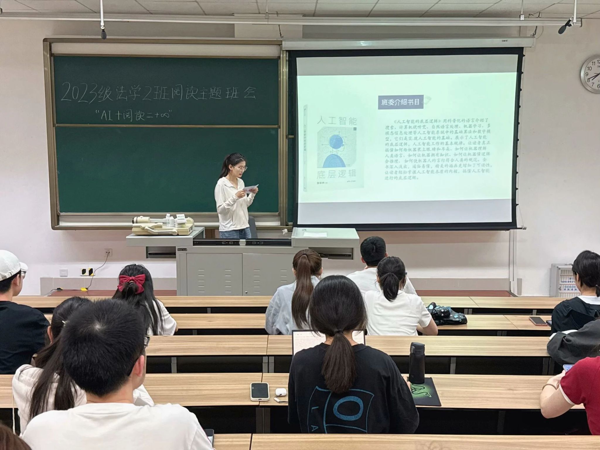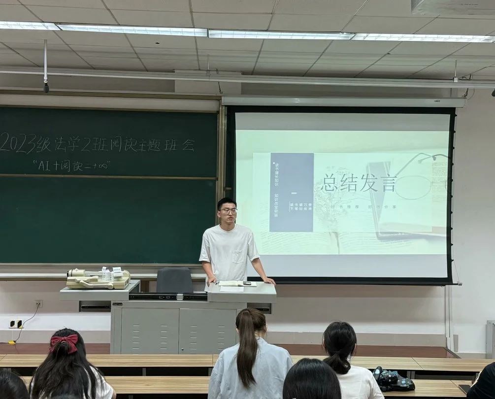 4月21日晚,法学2023-02班举办了读书分享会,师生齐聚一堂,共品书香,畅聊阅读感悟。班会伊始,周慧同学为大家推荐《人工智能的底层逻辑》一书,强调人工智能不仅是技术革新,更是思维方式的变革。随后,郑不凡和思梦凡同学分别就《浪潮将至》与《银翼杀手》进行分享,引发大家的深入思考。最后,陈泽东老师高度赞扬了同学们的积极参与和精彩表现,指出读书分享活动有助于拓宽视野、培养独立思考能力,并结合自身阅读感悟勉励同学持续阅读。未来,法学2023-02班将继续以创新为笔,以书籍为墨,书写阅读新篇,让文字的力量在春日的时光里生生不息,绽放出最动人的芳华。