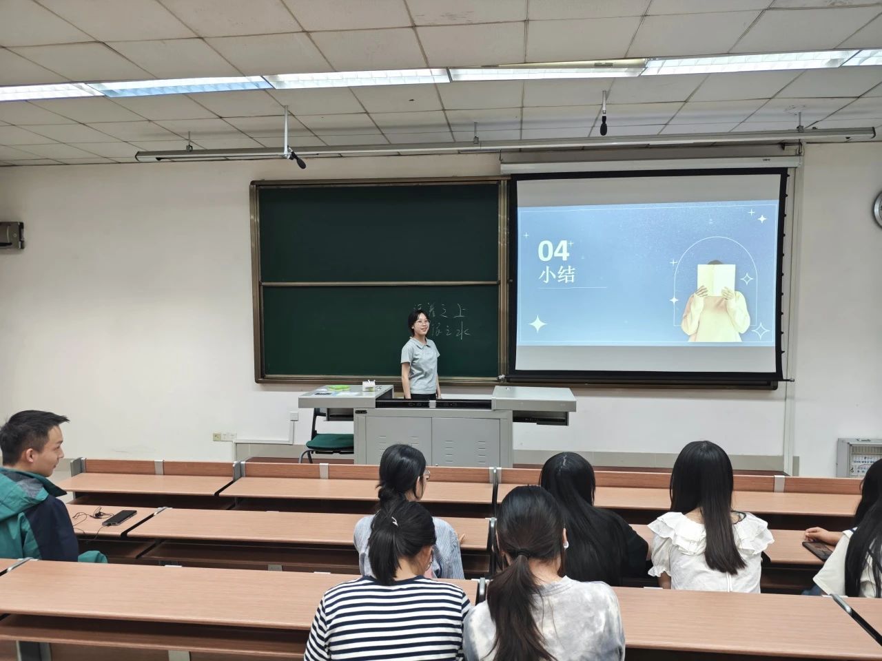 4月23日,公共2023-01班以“阅读:通往未来的桥梁”为主题开展了班会活动。首先,主持人通过一组触目惊心的数据直揭当下的阅读现状,警示大家要让AI成为深度阅读的“加速器”而非“替代品”。在分享环节,同学们对《小王子》《生死疲劳》《你的夏天还好吗》的心得分享让大家深刻认识到:技术能解构文本,但心灵的共鸣永远需要真实的生命体验。随后在班级共读环节10个小组以多元形式展现了阅读的丰盈与充实,大家就小组阅读内容进行了分享。在观看了《AI时代下如何阅读》视频后,两位同学就自己对于阅读时AI工具的使用与影响进行了分享。在班会的最后,徐梦莹老师进行了点评与分享,她以《我的阿勒泰》这本书切入,认为在AI时代下文字教会我们在哪里安放灵魂。