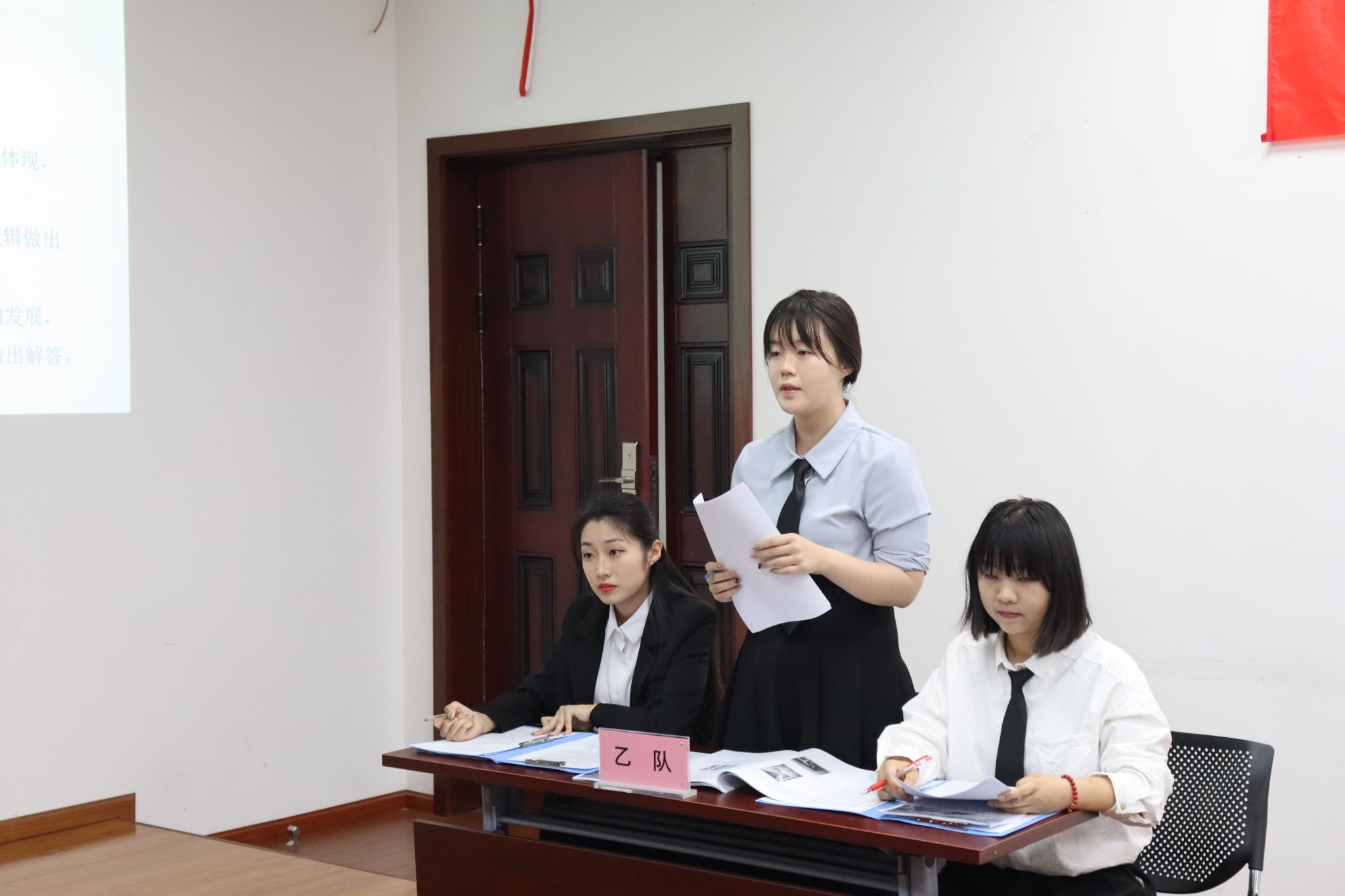 本次进入复赛的队伍共有八支,比赛分为上下两场,在两个分赛场中同时展开。在J01101分赛场的第一场比赛中,“西红柿炒蛋队”与“‘怡’骑绝尘队”展开了激烈角逐。“西红柿炒蛋队”围绕波尔村探讨积分制赋能乡村实践现代化,利用多中心理论阐释了波尔村积分制的发展路径以及运行机制;“‘怡’骑绝尘队”在基于成都市府青路“金角银边”项目考察队的基础上,利用协同迭代创新机制下的分析框架,对社区治理创新机制研究进行案例分析。在第二场比赛中,“爱与和平队”围绕天府国际动漫城运营案例,探讨了天府国际动漫城作为成都文化产业项目,在营业中暴露的各种问题,并提出诸多解决方案。“灵光闪闪队”以大滩镇借助“川善治”平台,通过积分制、数字技术破解基层治理难题的案例,搭建共建共治共享、协同治理理论体系。在两场比赛的自由辩论中,双方以不同的理论和视角展开犀利的对辩,唇枪舌剑,现场气氛热烈。