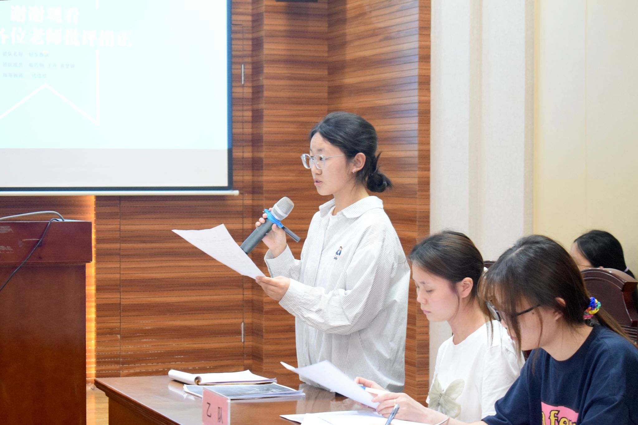 同一时间的01112赛场,率先登场的是“满天稀小队”和“乘坐公交请排队”。“满天稀小队”聚焦成都市金堂县三溪镇,探索当地创建农村物流品牌“交商邮融合”的可行性,“乘坐公交请排队”肯定该队调研广度的同时,也对其调研深入程度做出建议;接着,“乘坐公交请排队”从政策势能视角出发,阐述金堂县公交改革的惠民效果,而“满天稀小队”则对其政策执行的扩散程度和评估标准展开提问。第二场比赛中,“顶呱呱队”研究新津区“社会救助通”的推行模式并论证这一举措对提升社会救助服务可及性的效果,“三个臭皮匠队”提出对方案例缺乏公共性的问题;之后,“三个臭皮匠队”基于三鱼萌狮文化村分析了乡村文化资源的价值实现机制,而“顶呱呱队”向对方的调研结果提出疑问,指出对方理论与案例匹配度较低。几次交锋中,队员们出色的案例分析能力和临场反应赢得了评委和观众的掌声。