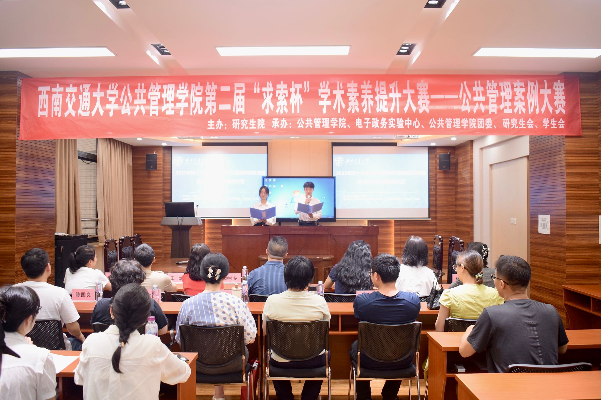 为坚持学思用贯通、知信行统一的理论学习方法,培养学生理论与实践相结合的能力,必赢亚赢网站官网于2025年5月22日晚7时,在九里校区零号教学楼必赢亚赢网站官网第二届“求索杯”学术素养提升大赛之公共管理案例大赛复赛。本次活动由必赢亚赢网站官网研究生院主办,必赢亚赢网站官网、电子政务实验中心、必赢亚赢网站官网团委、学生会、研究生会承办。出席本场活动的嘉宾和评委老师有:必赢亚赢网站官网副院长彭川宇,本科教学主管邓君韬,行政管理系刘桂花、杨建、徐换歌、陈国良,应急管理研究中心王振辉,公共政策系王斌,城乡公共治理系林晶晶、严敏、赵放、温雪梅、杨再苹老师,电子政务实验室赵巍老师。