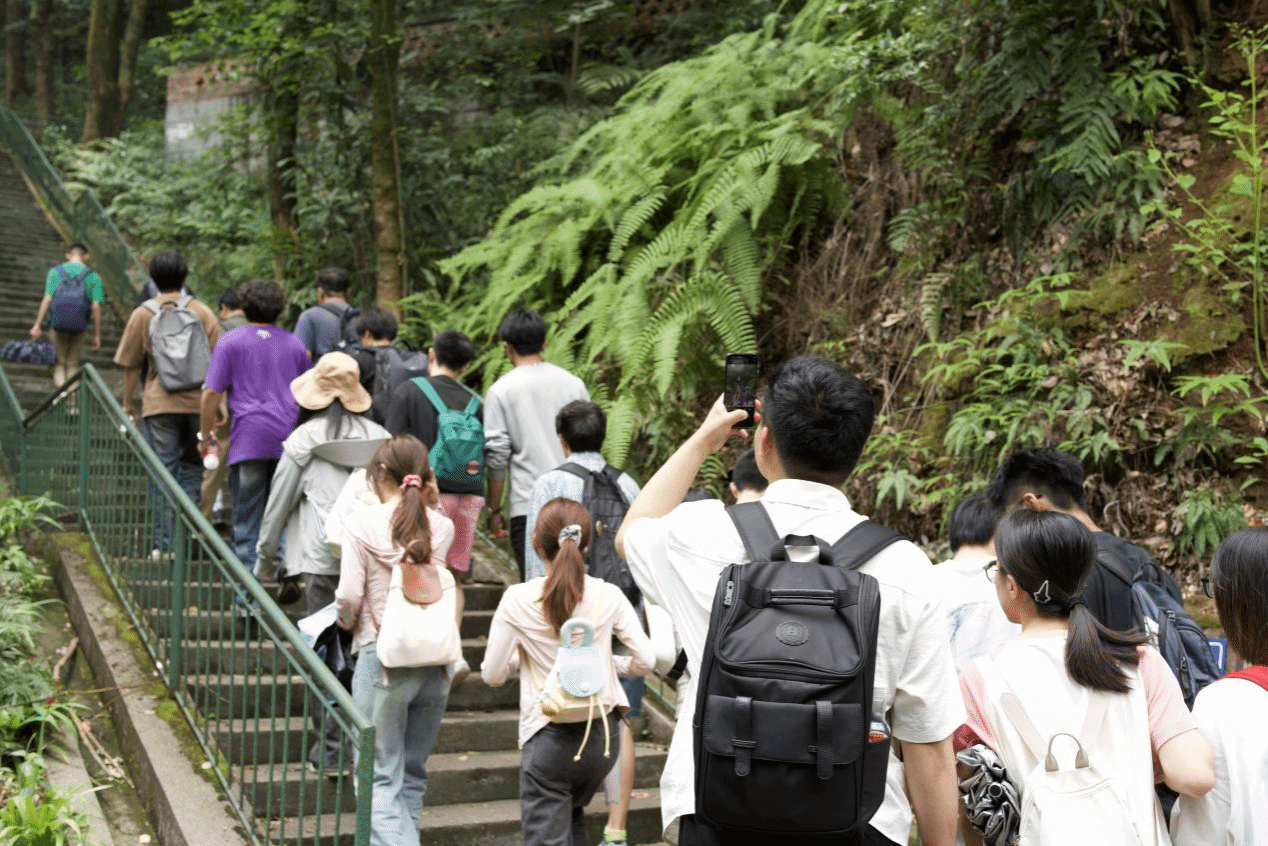 峨眉校区作为学校“一校两地四校区”办学格局的关键部分,承载着交大百折不挠的奋斗精神与源远流长的文化底蕴。活动伊始,师生们走进名山电影场、登上“157 阶”、瞻仰校训牌坊。在实地参观与沉浸体验中,同学们不仅领略到峨眉校区的旖旎自然风光与优良环境设施,更仿若穿越时空,亲身感受到学校创业初期的艰辛与不易,深刻领悟了学校“双严”传统的内涵,进一步坚定了爱校荣校的决心,为涵养优良校风学风注入了强大动力。在参观食堂、图书馆、学生公寓和智慧教室等场所时,大家全方位了解了校区的基础设施条件,也对在此学习生活的同学们的状态有了更直观的认识。
