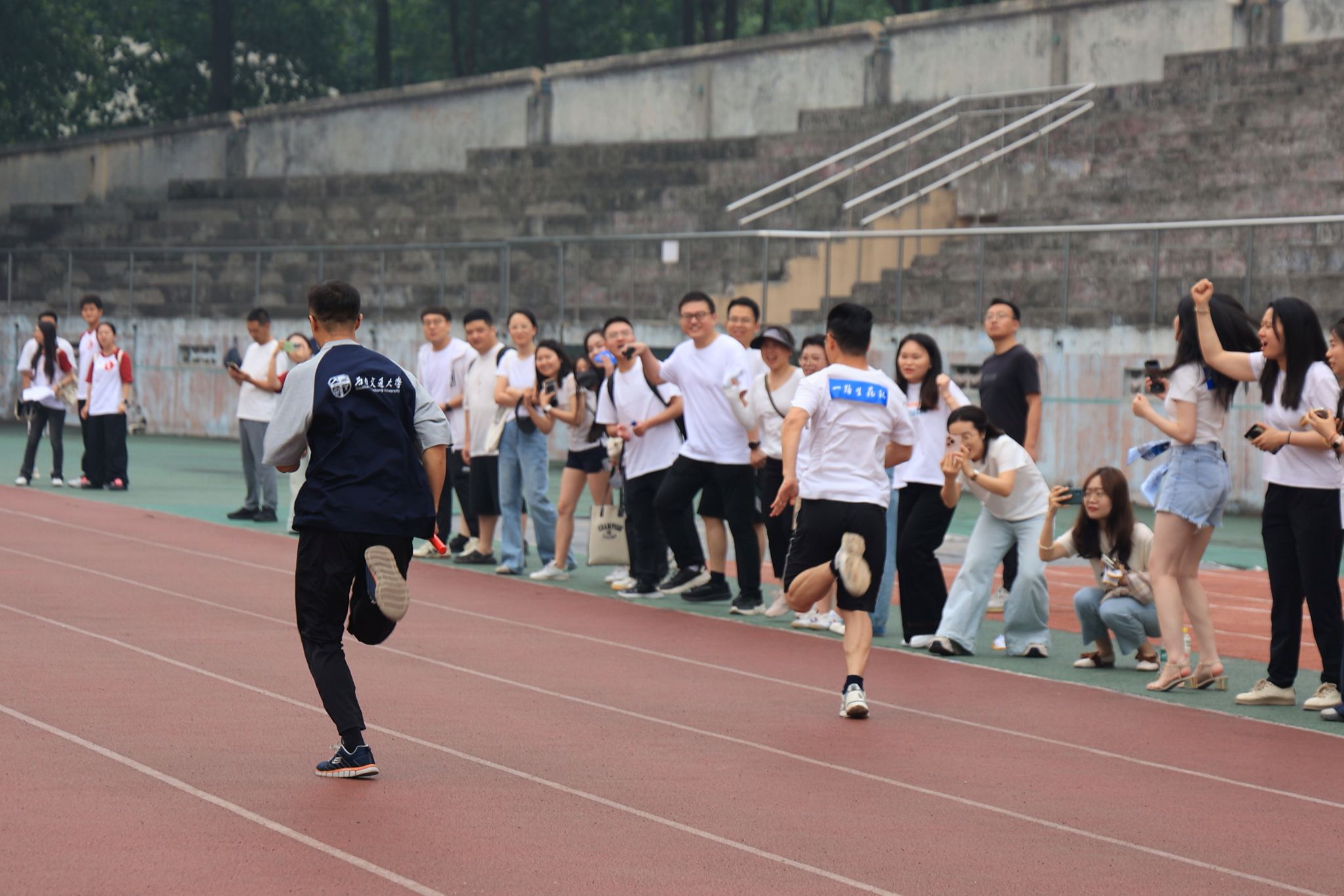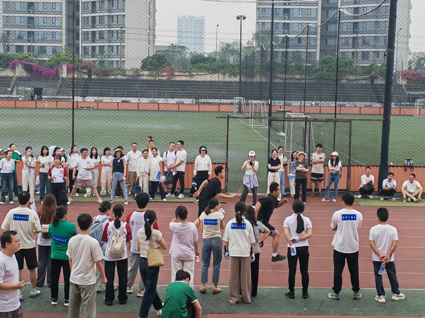 此次校庆主题日活动场地分布在足球场和詹天佑体育馆,多个趣味项目依次开展。2024级MPA学生组建的四支队伍(学习是人生大事队、谁都不服队、一路生花队)及校友代表队、教工代表队共六支队伍在各赛场上奋力拼搏。足球场作为活动的主场地之一,“蛇舞递辉”接力赛和“蛇曳争锋”拔河赛在这里激烈角逐。