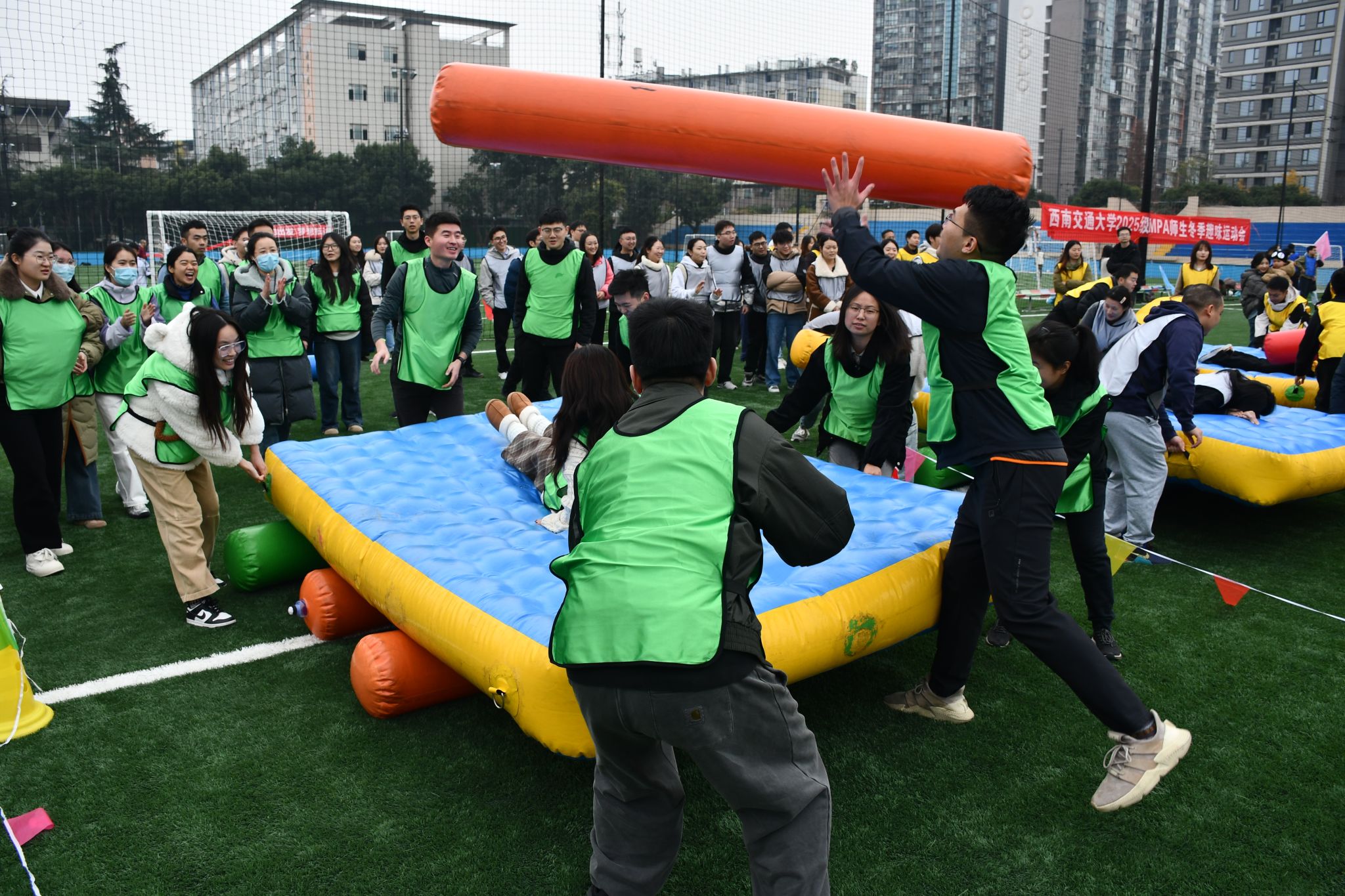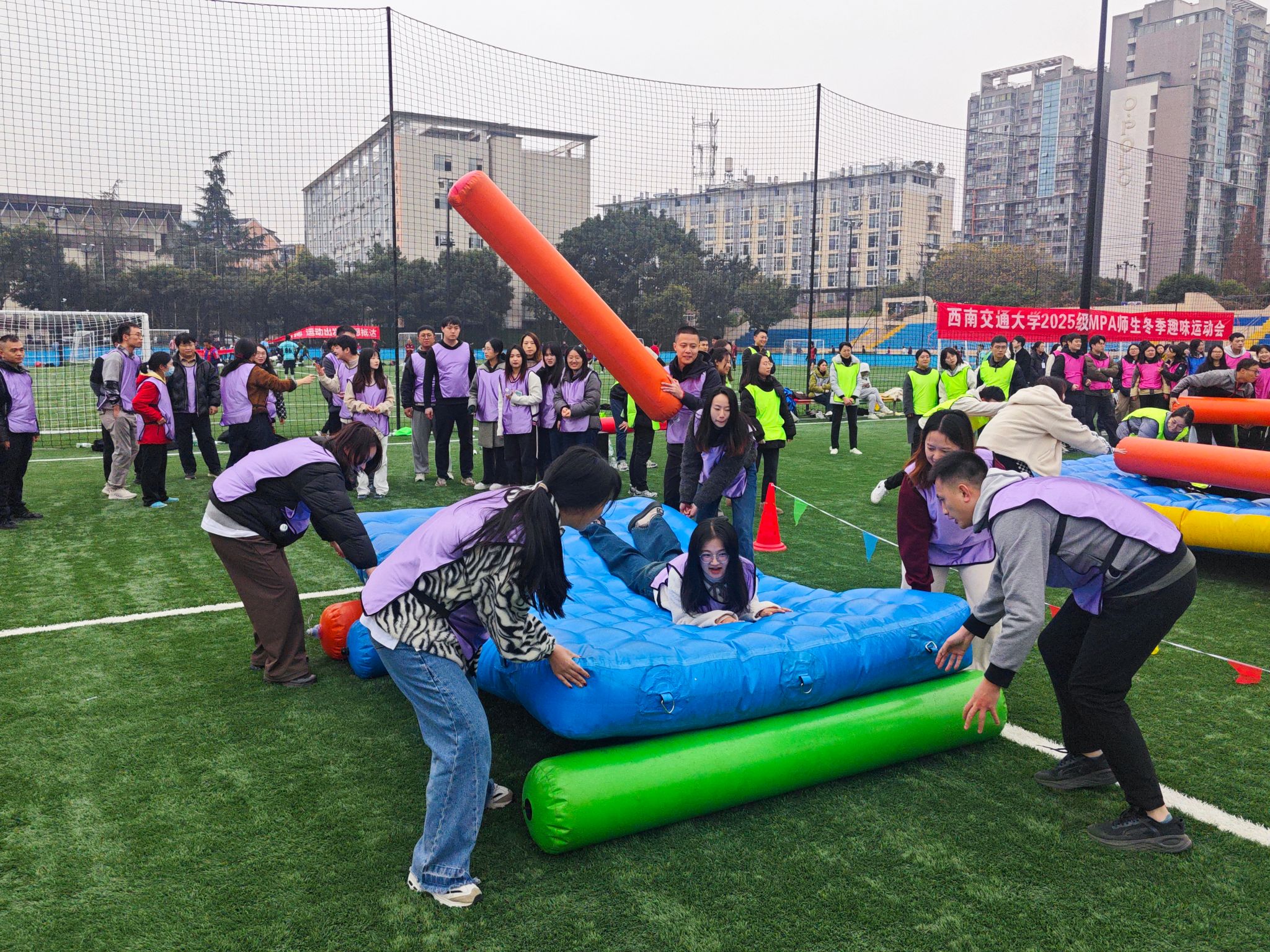 凛冬虽至,暖意盈怀。12月6日下午,必赢亚赢网站官网2025级MPA师生冬季趣味运动会在九里校区足球场拉开帷幕。尽管寒意袭人,师生们的参与热情却愈发高涨,这场融合了趣味、协作与互动的运动盛会,在冬日的校园里点燃了活力,也奏响了团结拼搏的青春乐章。