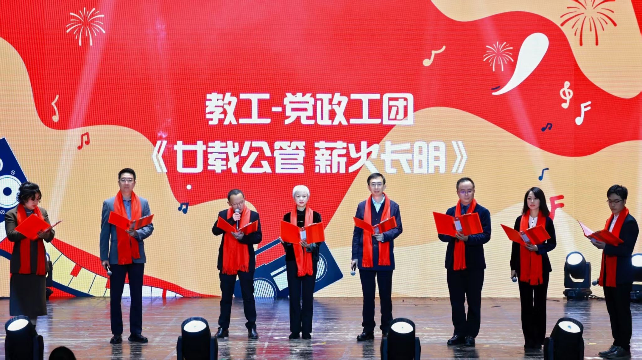 整场汇演在学院党政工团教师代表的诗朗诵《廿载公管 薪火长明》中拉开序幕回溯学院历程,寄托对学子的殷切期望。随后,师生同台,通过歌舞、朗诵、情景剧等多种形式,共同呈现了一场洋溢青春与家国情怀的视听盛宴。